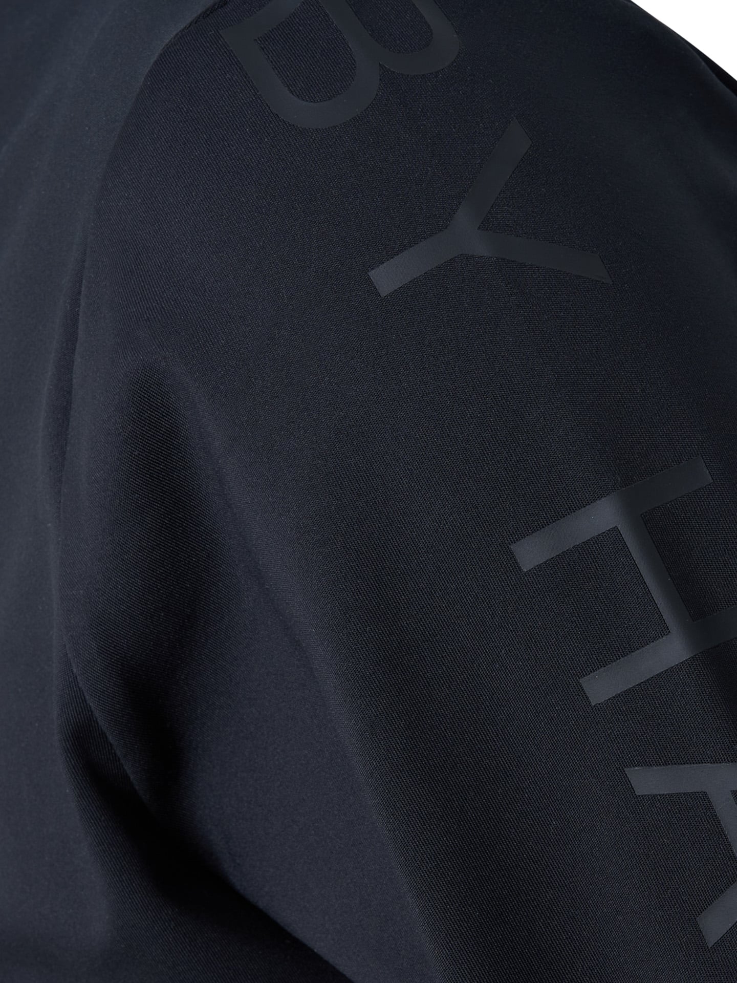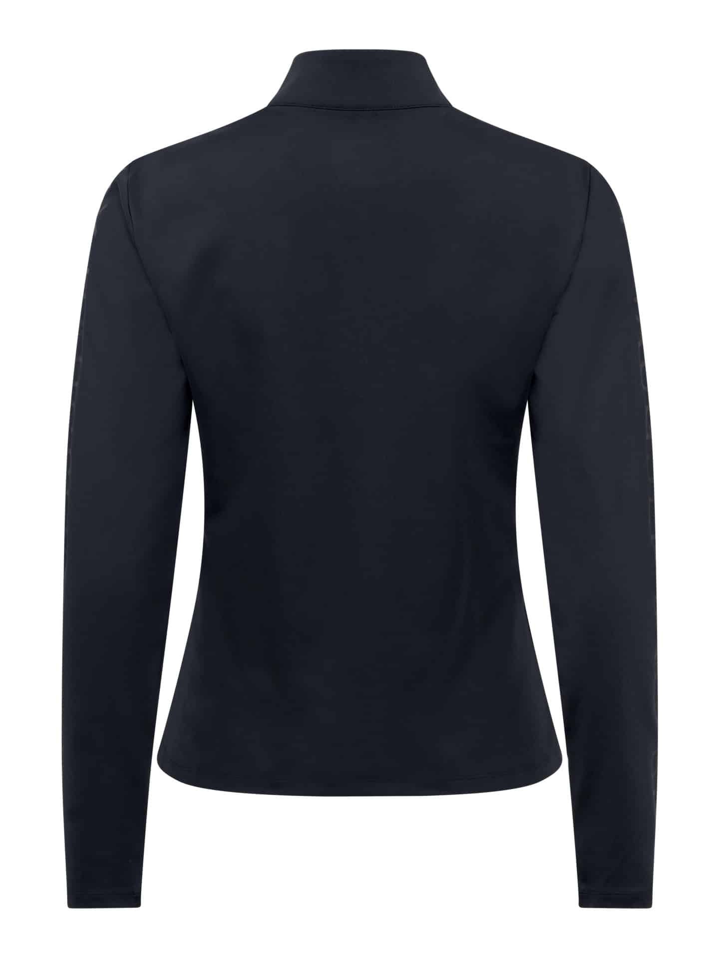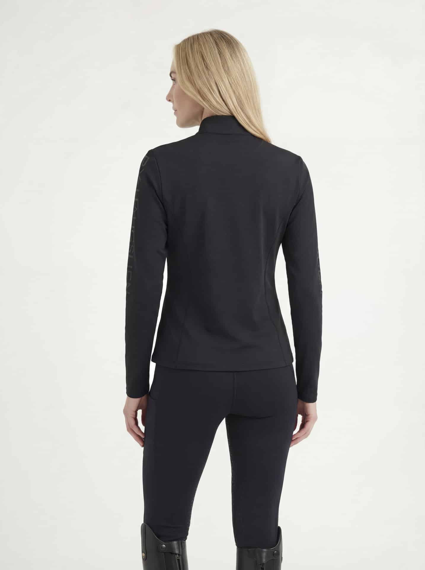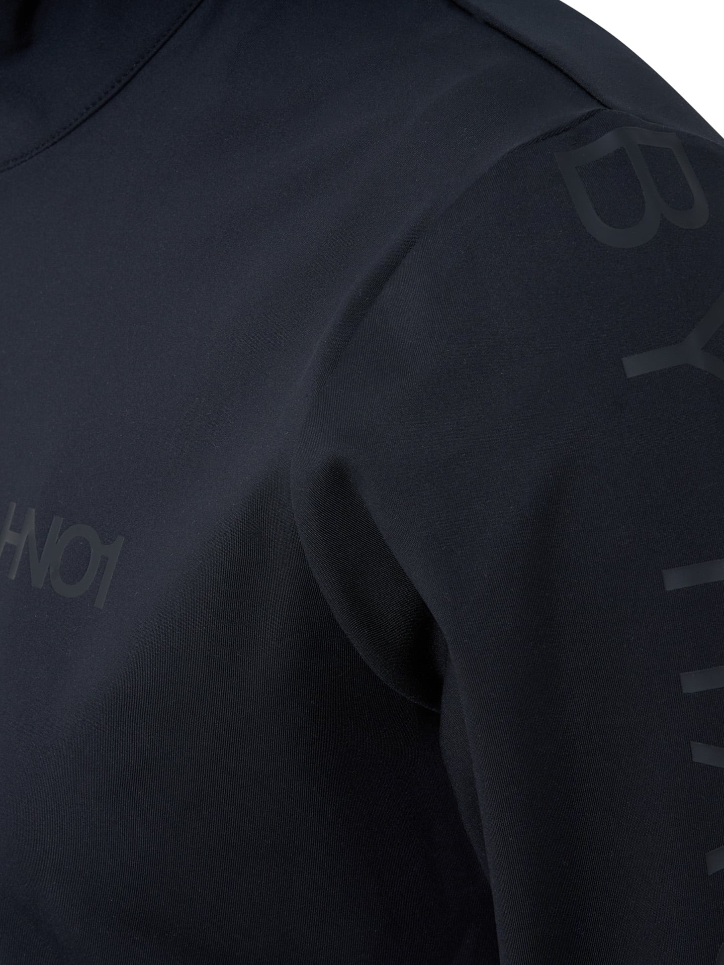 Black long sleeved zip-up shirt with HNO1 logo in the front and logo writing down the sleeves. It has four-way stretch, which makes it very comfortable during both training and stable work. Practical half-zip with turtleneck. The jersey is both breathable and heat regulating.
